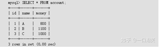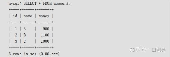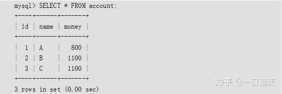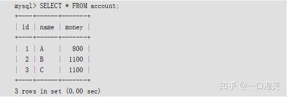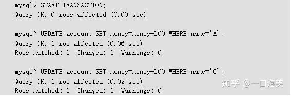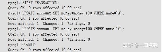 以上执行结果证明转账成功,首先使用START TRANSACTION语句开启事务,然后执行了更新操作,将账户A减少100元,账户B增加100元,最后使用COMMIT语句提交事务。