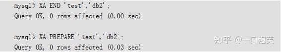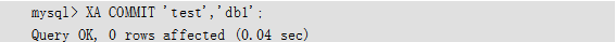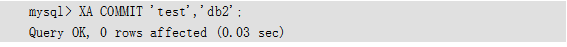 从以上执行结果可以看出,因为分布式事务还没有提交,所以分支事务暂时无法查看到其他分支事务插入的数据。然后对数据库DB1进行第一阶段提交,且进入PREPARE状态。