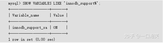演示分布式事务将使用两台MySQL,分别为DB1和DB2。首先查看DB1是否支持分布式事务。