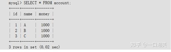 以上执行结果证明客户端B成功回滚了事务。然后通过客户端A再次查询account表中的数据。