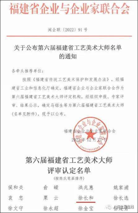 新年伊始,第六届福建省工艺美术大师名单公布,南平市建阳区枕头岭建盏陶瓷有限公司创始人徐长和荣登榜单,喜 获“ 第六届福建省工艺美术大师”荣誉称号
