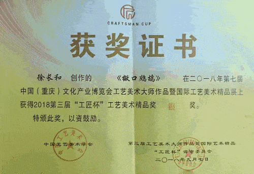 徐长和大师不仅在传统古典美学的基础上锤炼技艺,更是在实践中勇于创新,多次在全国工艺美术设计大赛中获奖。