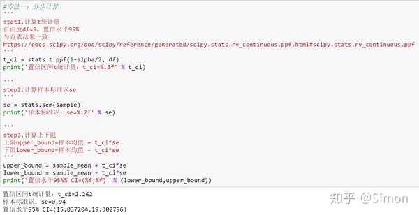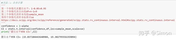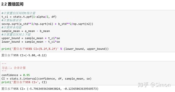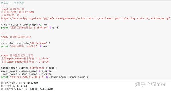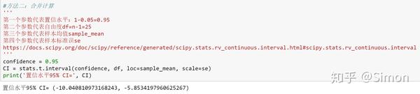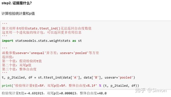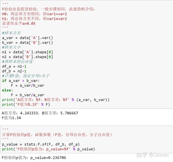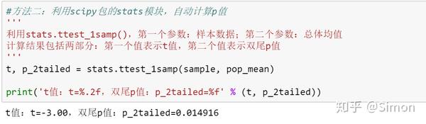 方法二:使用Python的科学计算包scipy自动计算检验统计量和p值。
