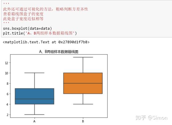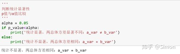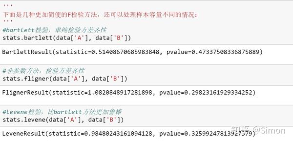 总结:无论以上哪种方法做方差齐性检验,均得到p值大于显著性水平α的结果,证明两总体等方差a_var = b_var。