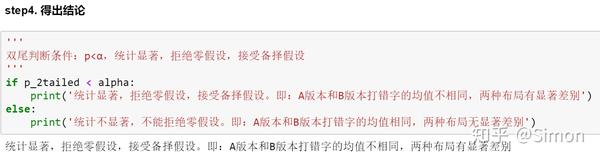 - p值与显著性水平 α作比较,得出统计显著性结论