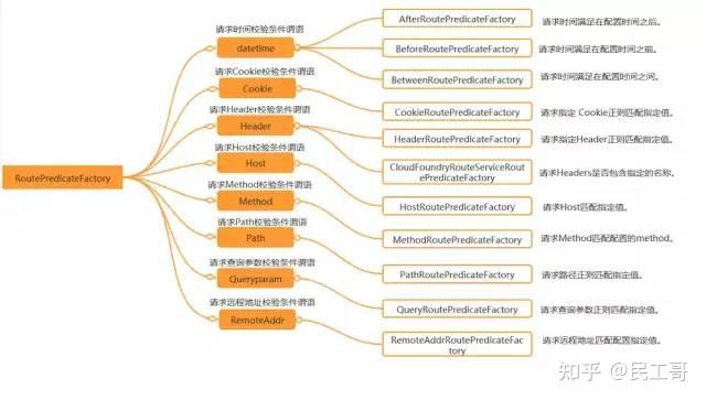 Spring Cloud Gateway内置了许多Predict,这些Predict的源码在org.springframework.cloud.gateway.handler.predicate包中,有兴趣可以阅读一下。现在列举各种Predicate如下图: