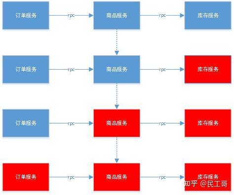 - 同步等待:资源隔离、MQ解耦、不可用服务调用快速失败等。资源隔离通常指不同服务调用采用不同的线程池;不可用服务调用快速失败一般通过熔断器模式结合超时机制实现。