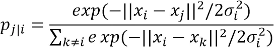 是以x_i自己为中心,以高斯分布选择x_j作为近邻点的条件概率: