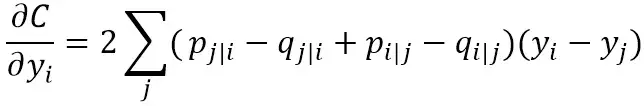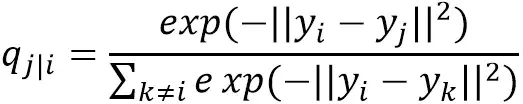 q_(j|i)是y_i以自己为中心,以高斯分布选择y_j作为近邻点的条件概率: