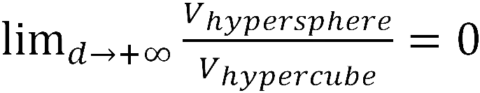 维数灾难(curse of dimensionality):描述的是高维空间中若干迥异于低维空间、甚至反直觉的现象。该现象的详细论述可以阅读参考文献[1] ,其中通过超立方体和其内切球的推导十分精彩,这里不再赘述。