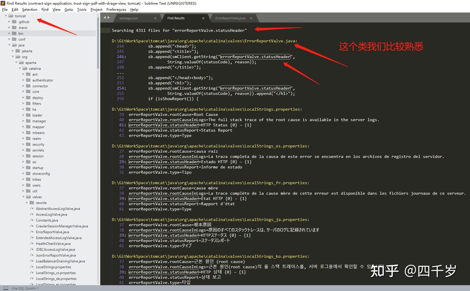 根据上面的搜索结果,我们再搜 errorReportValve.statusHeader 这个东西,Tomcat的代码里面肯定会引用 errorReportValve.statusHeader 这个东西。