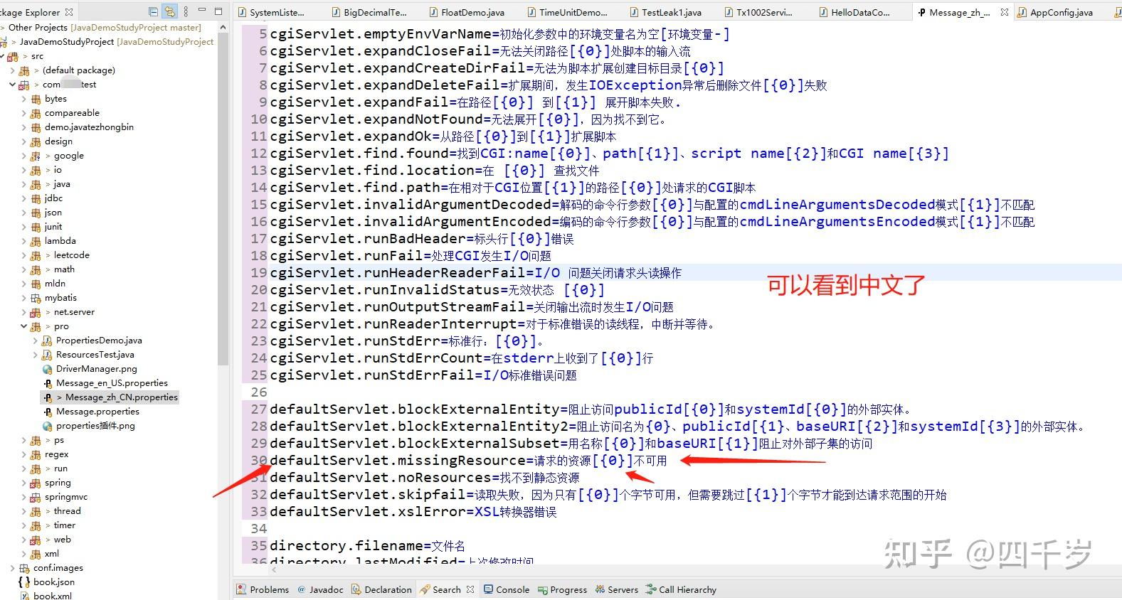 当我看到Locale的时候,我已经明白为什么404页面上为啥有中文了。这不就是学JAVA时的国际化知识点吗?果然,我在Tomcat的安装目录下面找到了i18n-zh-CN.jar的jar包了。赶紧打开看一下: