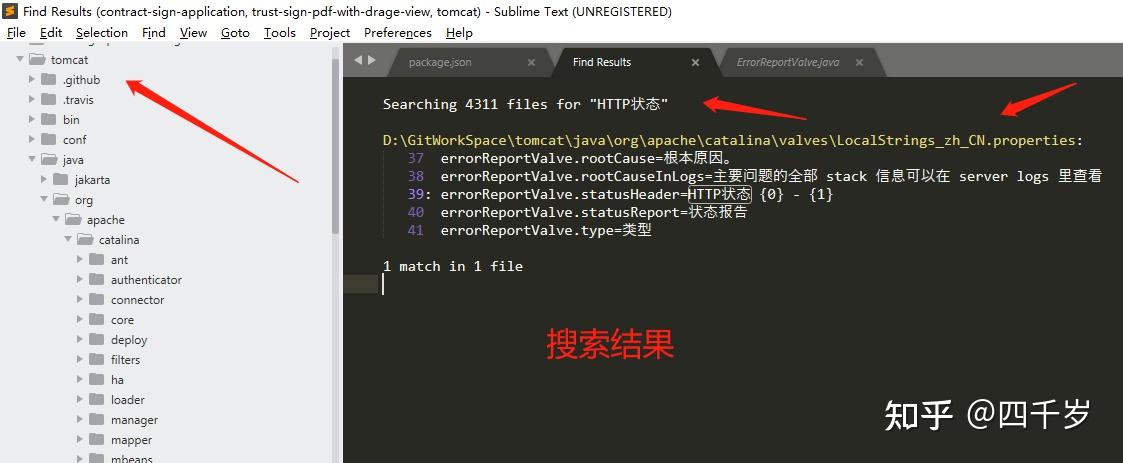 下载完成使用文本编辑 Sublime Text 打开tomcat的源码。然后我们需要想想怎么搜,搜什么?我们在看一遍404页面上面都有什么?
