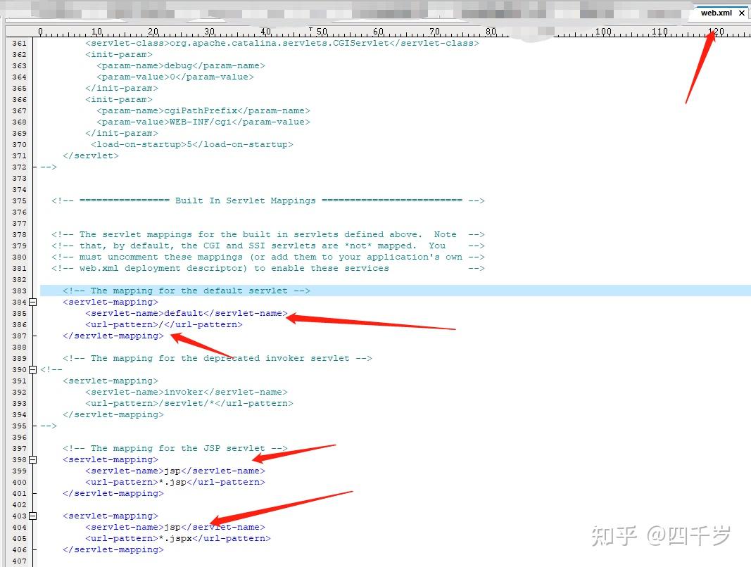 org.apache.catalina.servlets.DefaultServlet在Tomcat 中是一个全局的Servlet,只要是在Tomcat下面部署的Web应用都会用到它。DefaultServlet是在Tomcat的安装目录conf下面的Web.xml里面配置的。如下截图: