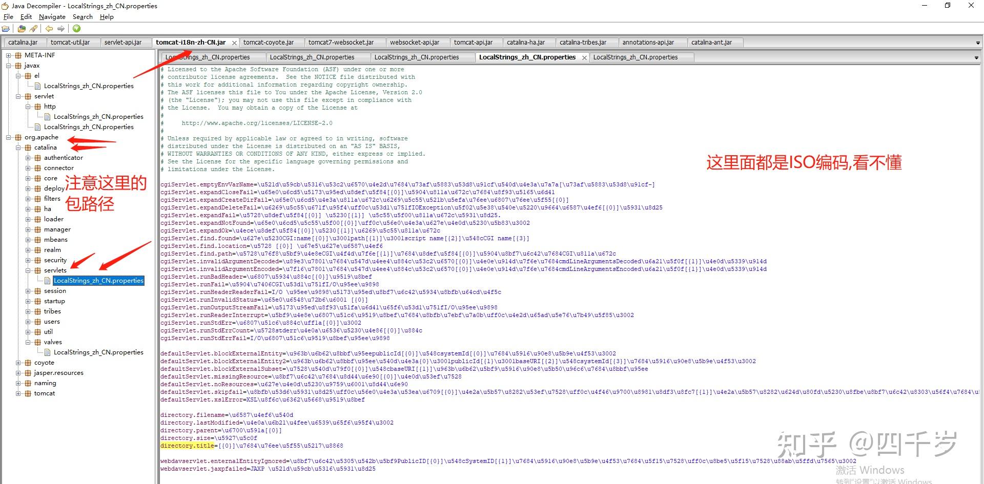 我们在DefaultServlet源码里面看到这样一行代码 protected static final StringManager sm = StringManager.getManager("org.apache.catalina.servlets");传了一个包路径,刚好在tomcat-i18n-zh-CN.jar里面能找到一样的包路径,顺着这个包路径可以找到这样一个properties文件,如下截图: