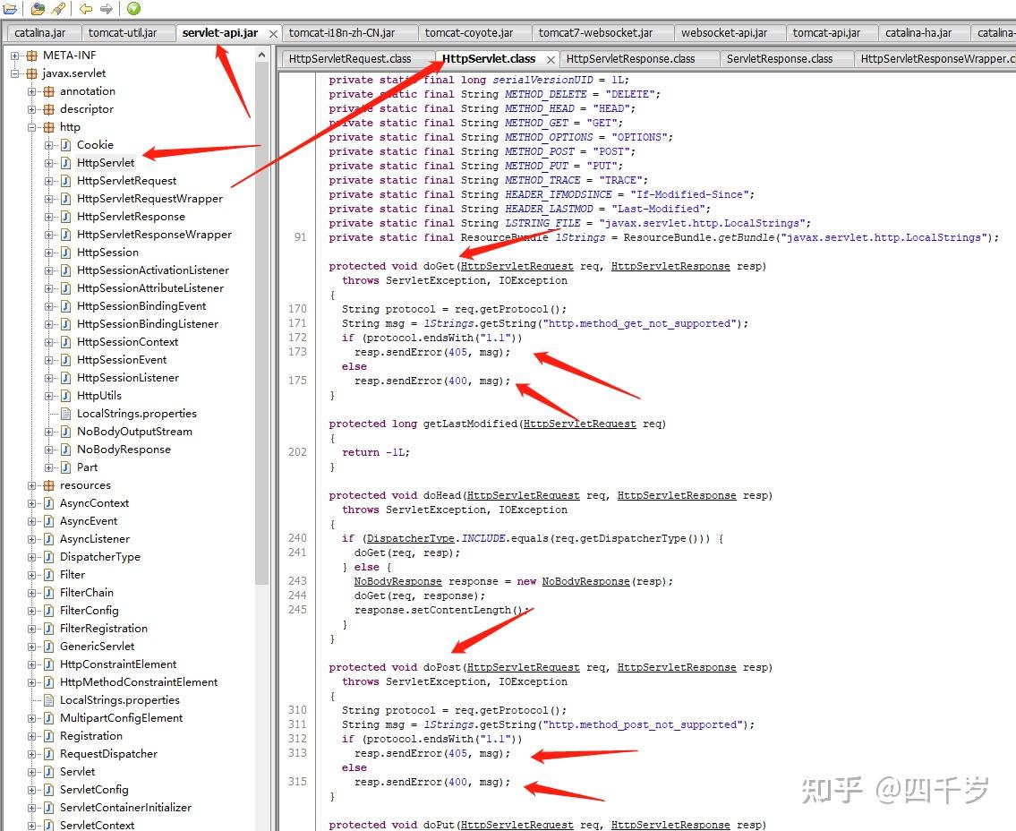 在HttpServlet的源码里面,doGet和doPost方法默认直接就报400错误了。