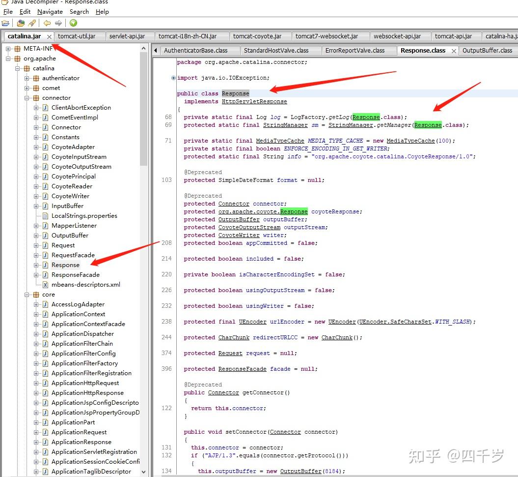 可以看到HttpServletResponse的真正实现类是org.apache.catalina.connector.Response,看下Response的源码