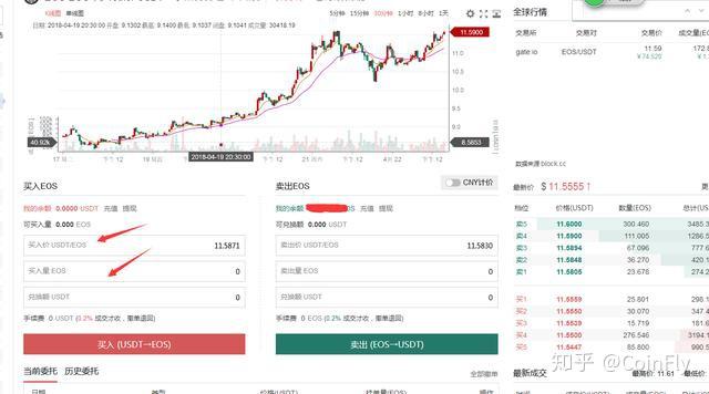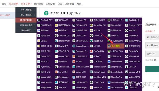 购买成功之后你的账上就有USDT了,这时找到我们的USDT-EOS兑换对交易页面: