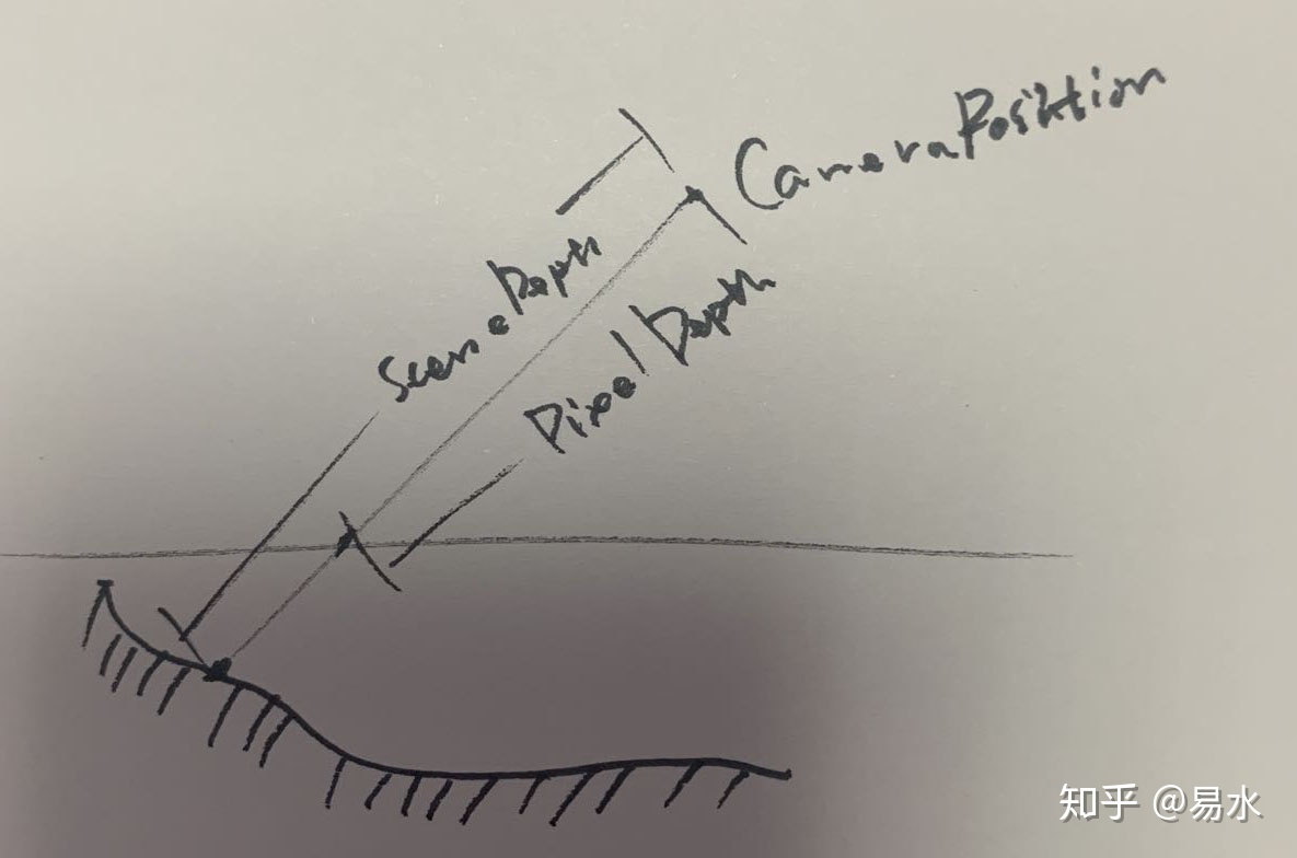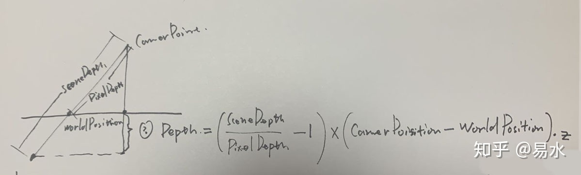 - 视线深度:SceneDepth - PixelDepth 可以求出沿着cameraVector的视线深度。