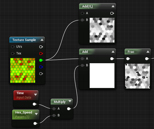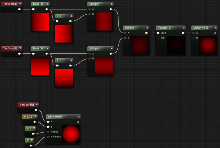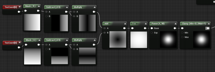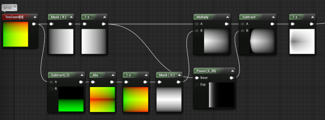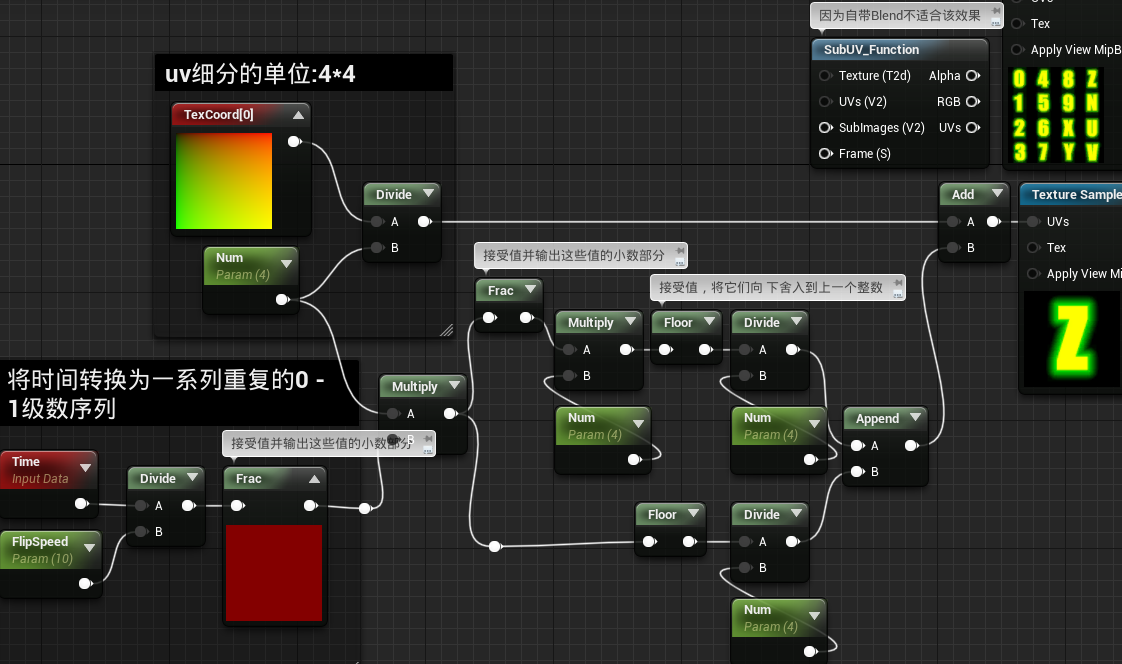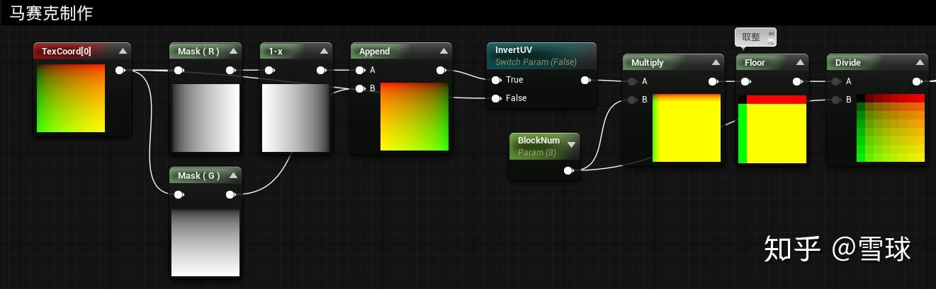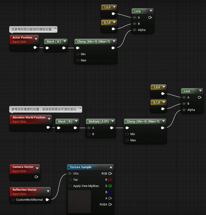 - 绝对世界位置只取XY,使其自上而下地投射;缩小数值因为绝对世界位置太大了