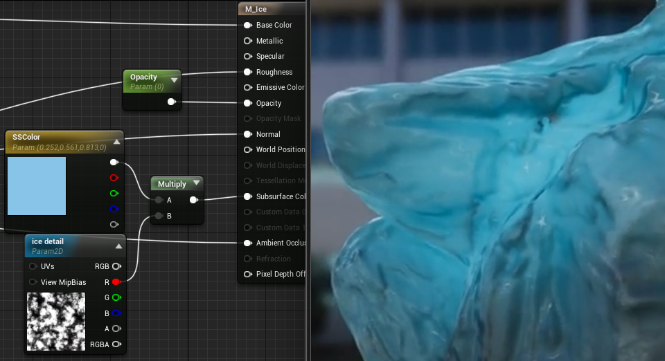 主体+冰内部透光的的subsurface材质+bumpoffset表面冰霜效果以及制造假深度