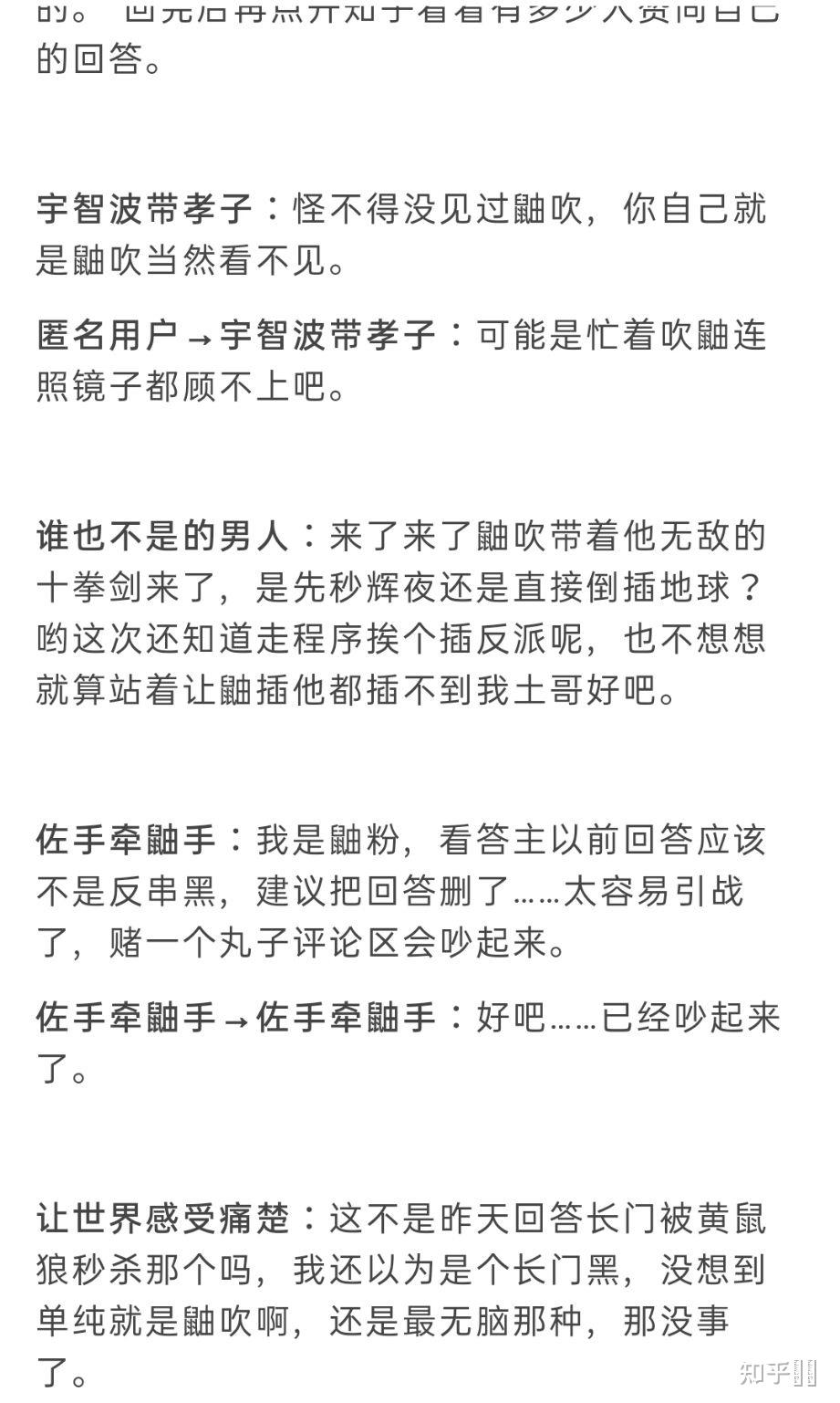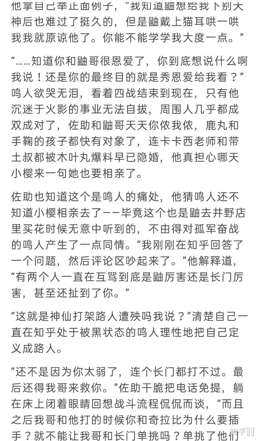 佐助点进_ [如何看待《火影忍者》有一大批粉丝是鼬吹?]的话题,先挨个给所有黑鼬的回答点了反对,再洋洋洒洒道: