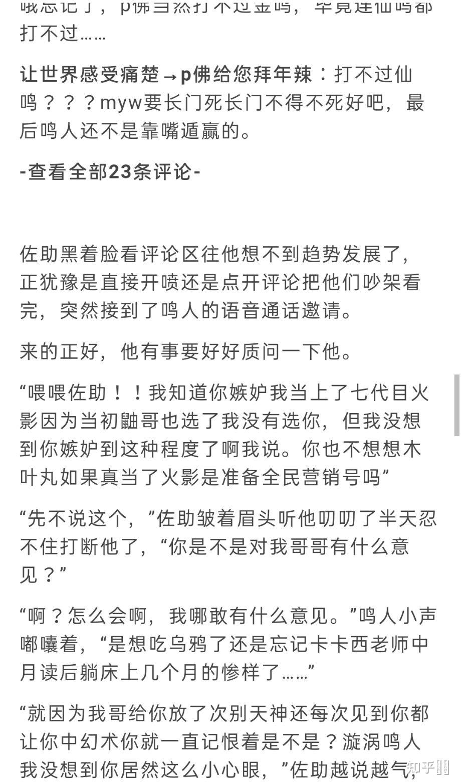 号.jpg (鸣人很喜欢看《Naruto》 ,经常在漫画里自己截自己表情做成表情包玩),“快用你无敌的嘴遁想想办法啊,让木叶丸重回正道吧,你这超级大白痴肯定干不了多久火影的,干脆退位吧。我觉得第八代让木叶丸来挺好的。”回完后再点开知乎看看有多少人赞同自己。
