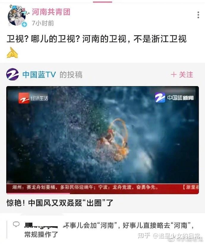 随后被河南共青团挂出,说道“卫视?哪儿的卫视,河南的卫视,不是浙江卫视。”