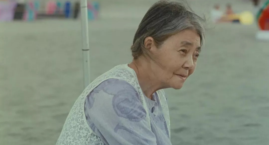 片中,知道自己大限将至的奶奶在海边看一家人玩水,用口型说了一声无声的谢谢。