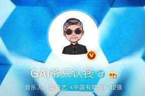 他微博名叫“gai爷只认钱”,太粗暴了,果然人如其名。他在圈内有名,因为这个节目,他独特的gai式风格和爷们的个性才被推至大众。