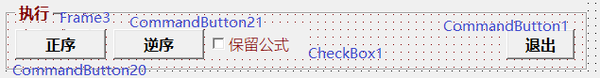 执行部分包括一个Frame控件框,1个CheckBox和3个CommandButton。