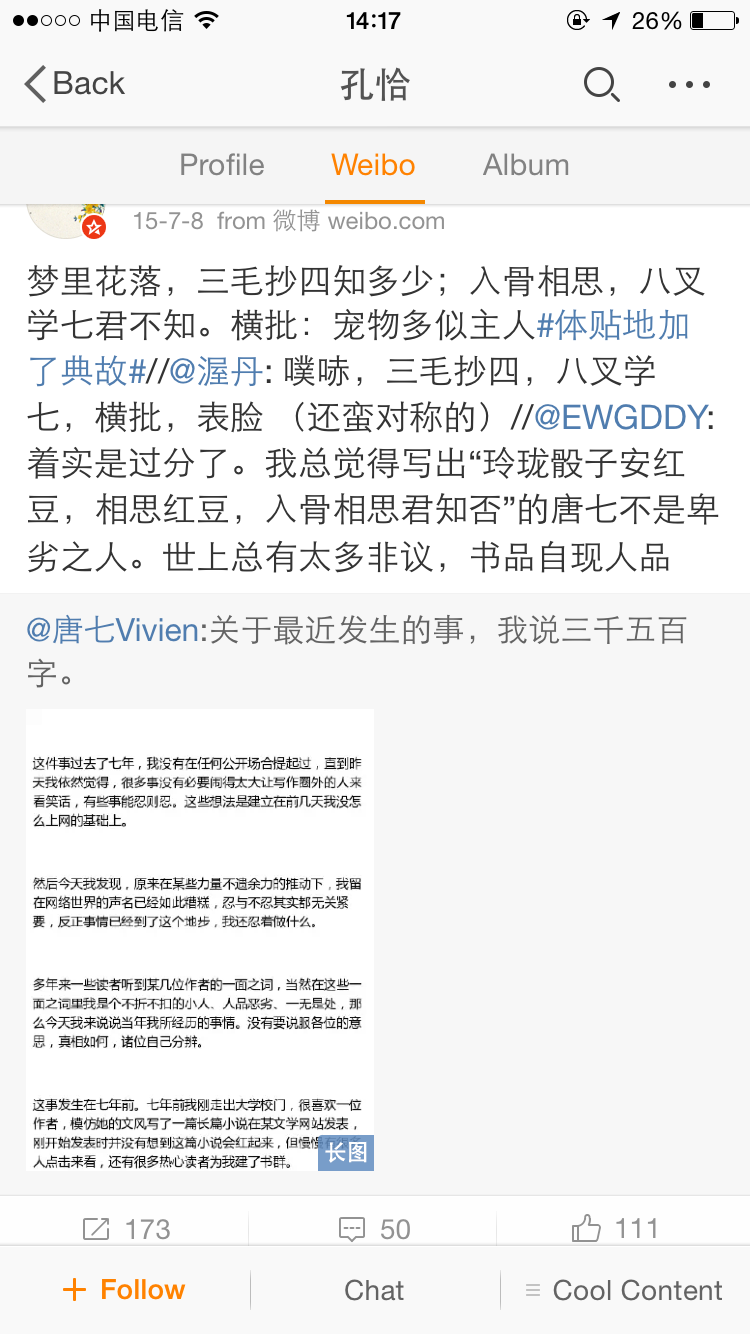 http:// m.weibo.cn/5993234678/4 005317089922711?uicode=10000002&moduleID=feed&featurecode=10000085&mid=4005317089922711&luicode=10000003&_status_id=4005317089922711&extparam=100103type%3D1%26cuid%3D2579122737%26q%3D%E5%AD%94%E6%81%B0%26t%3D1%26sid%3Dt_wap_ios%26category%3D31%26pos%3D7_0%26wm%3D3333_2001&lfid=100103type%3D1%26q%3D%E5%AD%94%E6%81%B0%26t%3D1&sourcetype=page&lcardid=weibo_10117_1_7_0__0最后说一点废话: