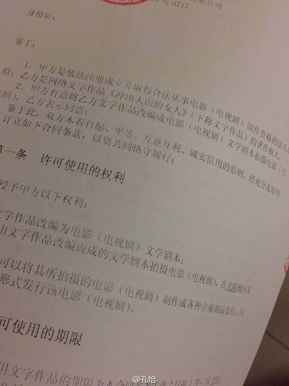 第二,孔恰写的《冲出大山的女人》并不是原创,此前也很清楚地标明。而她现在却把自己写的本子给卖了(虽然看不出卖给了谁),也没有展示她向原梗作者的授权——请问她这算不算侵权?