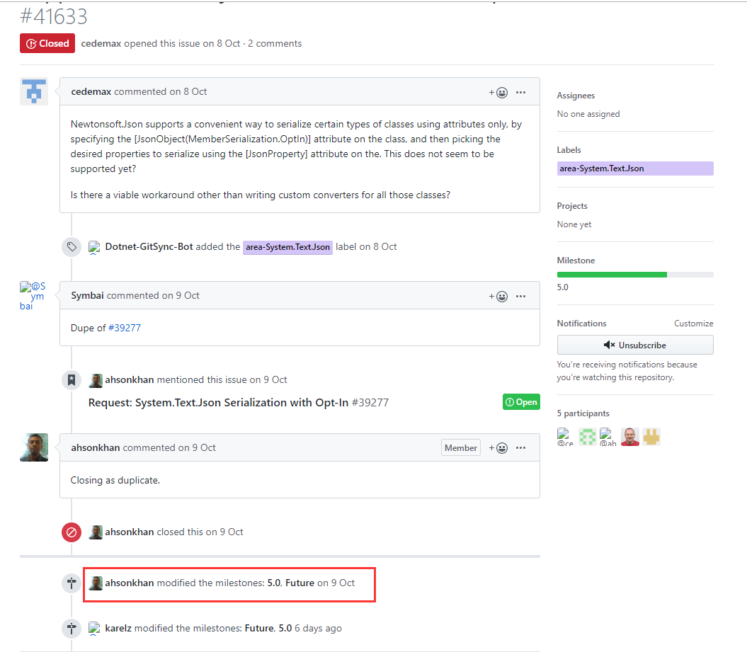 不过,很遗憾的告诉大家,目前 System.Text.Json 不支持这种方式;为此,我特意去看了 corefx 的 issue,我看到了下面这个反馈