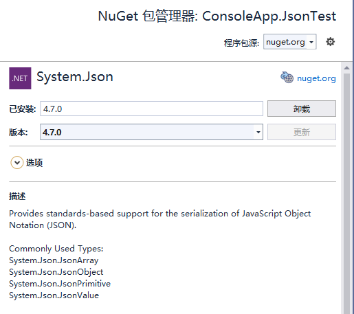 提供JSON互操作的静态类,提供了一系列 Serializer/Deserialize 的互操作的方法,其中还有一些异步/流式操作方法。