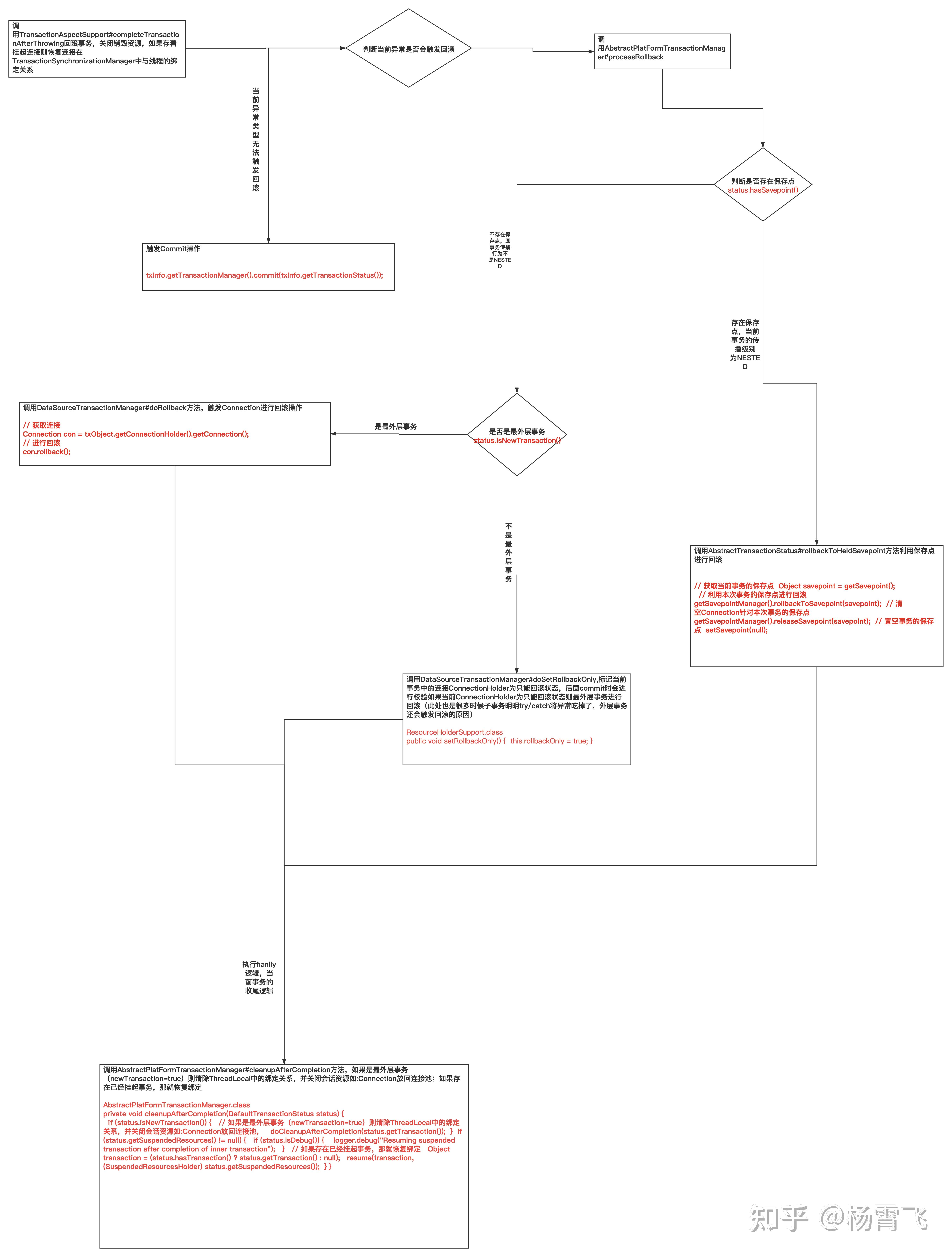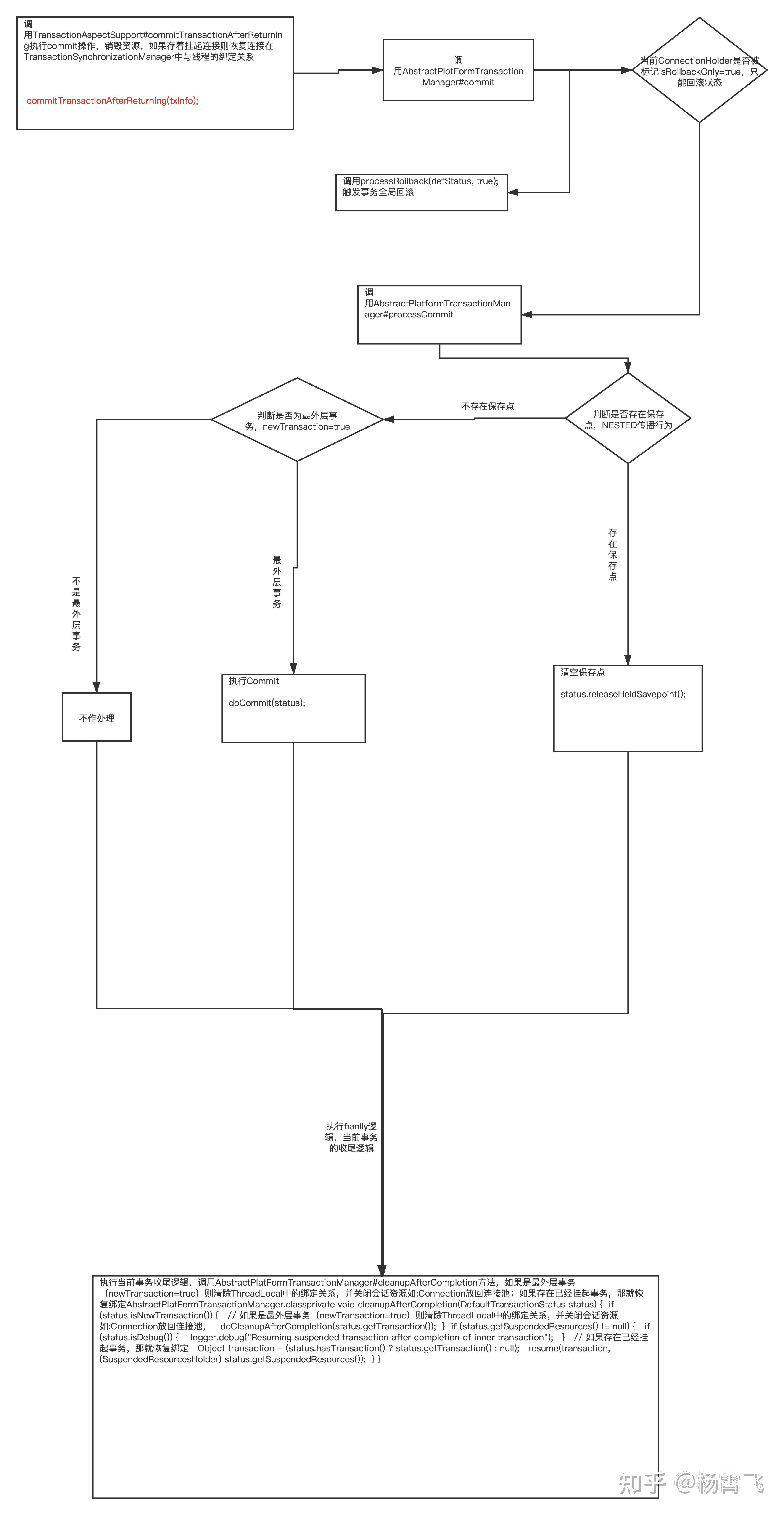 AbstractPlatformTransactionManager.processCommit(),此方法过程很多小分支在步骤B中都分析过,都是同一个方法不同参数罢了这里就不贴了。主要明白四个地方