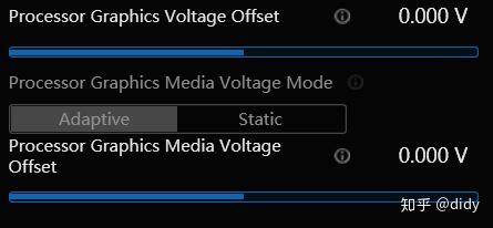注意,CPU 和 Graphics 的电压偏移值是可以单独调整的,后者也就所谓的核心显卡,相较而言,调低它的电压更容易引发黑屏。所以,尽可能保持 Graphics 的电压偏移不变,只调整CPU 部分的电压偏移值。