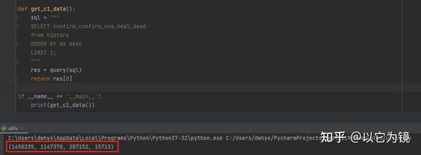 数据汇总栏中,需要展示累计确诊、现有确诊、累计治愈和累计死亡四个值,通过pymysql查询数据库即可。