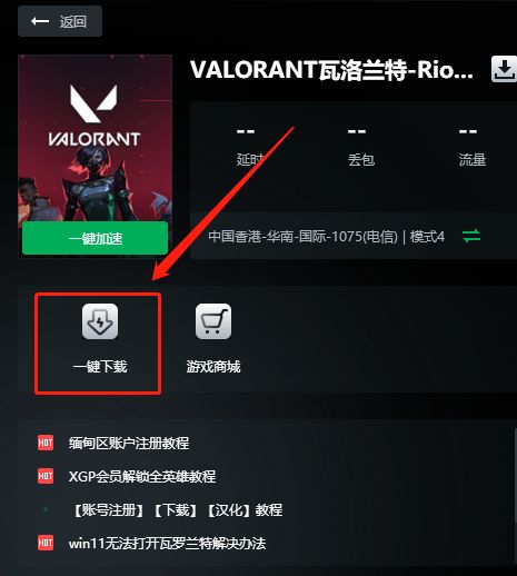 不过毕竟是一款外 服游戏,考虑到很多玩家找官 网会很不方便,于是迅游便带来了一键下载功能,玩家只需通过官 方渠道下载官方版本,进入客 户端搜索《瓦罗兰特》即可找到对应游戏,打开进入详情界面后即可看到,“一键加速”按钮下方有着一个“一键下载“功能,玩家只需先点击“一键加速”进入加速模式,然后即可直接将《瓦罗兰特》下载至本地,省去寻找官 网的时间,十分方便且快捷。