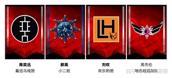 例如导师周杰伦的战徽,中间是一个粉色大写字母J,两边是翅膀。周杰伦在节目中介绍说,两片翅膀的寓意是希望所有学员跟着自己一起展翅高飞,而之所以字母J是粉色是因为自己喜欢粉色。比起周杰伦战徽的霸气,陈奕迅的战徽在设计上更加别出心裁,远看是自己名字中的“奕”字,而且把他的英文名Eason的首字母E融入其中并左右对称排列。“我喜欢平衡感的东西”,陈奕迅在节目中这样说。