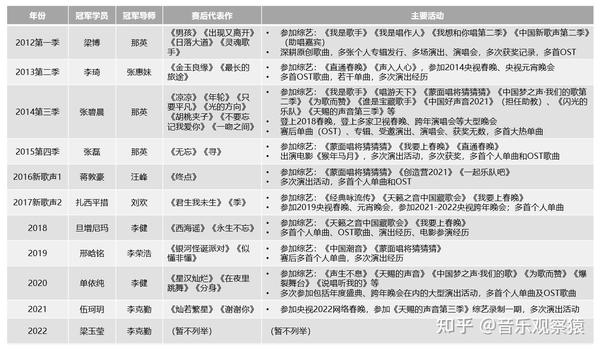 笔者做了一张详细的回顾,列举了他们夺冠后的代表作,以及主要演艺活动: