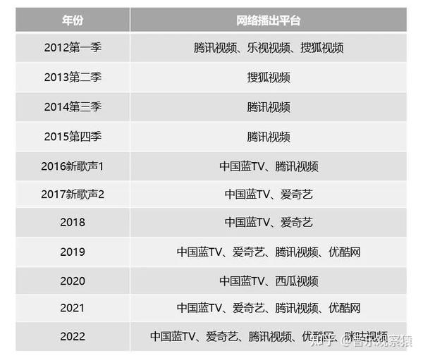 · 从各平台对独家版权的争夺到各平台同享版权,播出平台的变化也见证了好声音一路历程。2020年好声音与同西瓜视频的合作是一次新颖大胆的尝试,但保持好声音IP长期持续的立身之本还是要回到节目内容质量本身。
