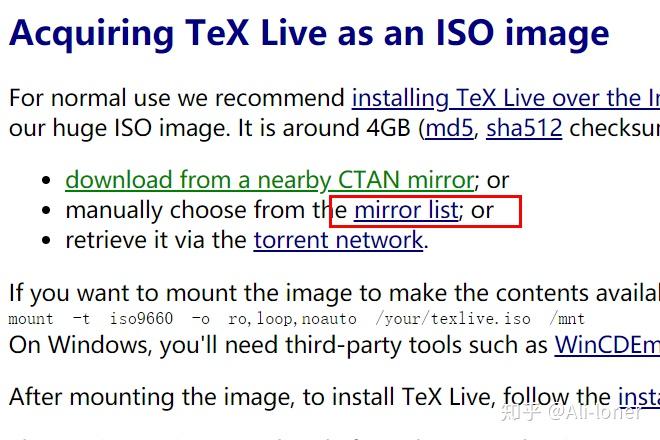 接下来是 TeX Live 的 下载与安装说明 :