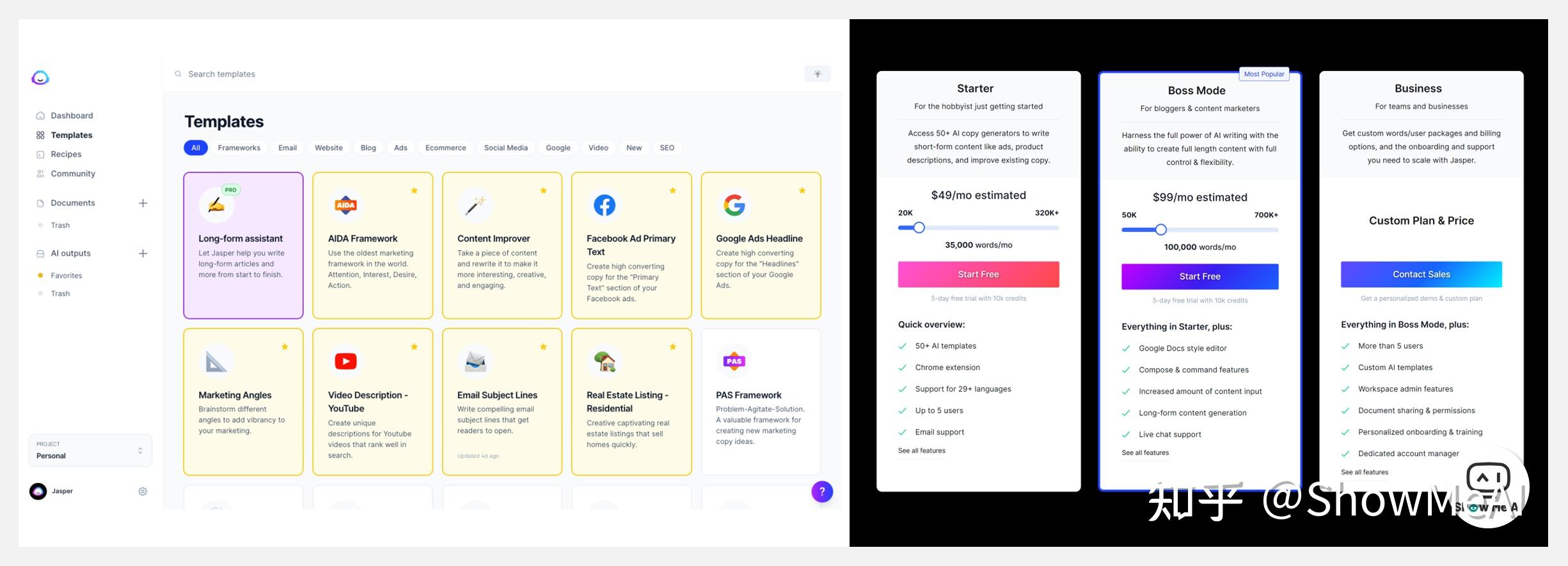 Jasper 不提供免费试用,个人模式每月 29 美元,Boss 模式每月 99 美元。尽管价格不菲,但由于其具有竞争力的功能、干净的用户界面和高质量的输出潜力,对于那些希望进行大量写作和文案而无需聘请昂贵的外部帮助的人来说,它仍然具有很高的价值。