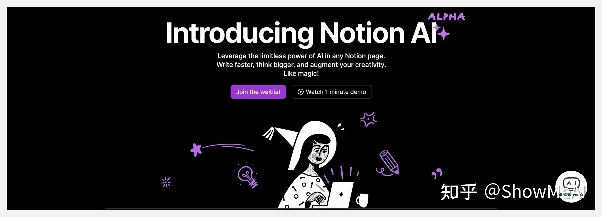 Notion 是一款将笔记、知识库和任务管理整合的协作工具,高效又美观,高效被用户称为“来自未来的笔记协作工具”。Notion 基于 OpenAI 的 GPT-3 开源模型,推出了 Notion AI (Alpha) 是写作助手,包括根据文本提示生成博客/邮件/JD初稿、列出idea候选清单、修正拼写语法、为会议/文档做总结等功能,能够有效地节省时间,提升创造力。不过需要点击官网 Join the waitlist ,等待官方邀请才可体验。