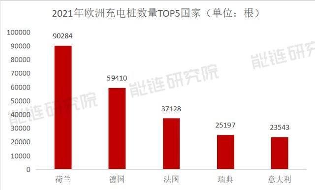 根据 ACEA 数据,欧盟有一半的电车充电站仅集中在荷兰(约 9 万个充电桩)和德国(约6万个充电桩),德国、法国和荷兰充电站点总和占欧盟约69%,瑞典、意大利排在第四、第五名。荷兰每1.5公里就会有一个充电桩。