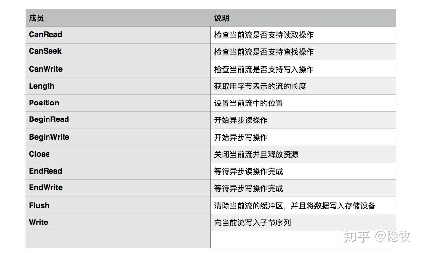 Stream类的一些常用成员如下表所示:
