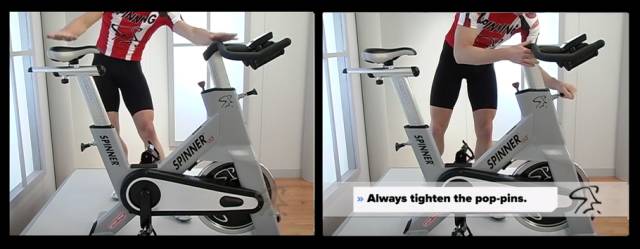 在骑动感单车前,首先我们要关注的是车座的高度,当我们坐在座位上,当脚蹬踩至最低位置时,以膝部稍微弯曲为宜。