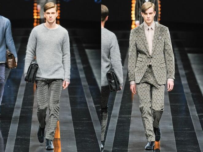 酒红,近年来彰显男性魅力的专属特色,色彩鲜艳中式设计的丝绒外套,搭配红色印花羊毛围巾,优雅从容的绅士风格,更易虏获女人芳心。