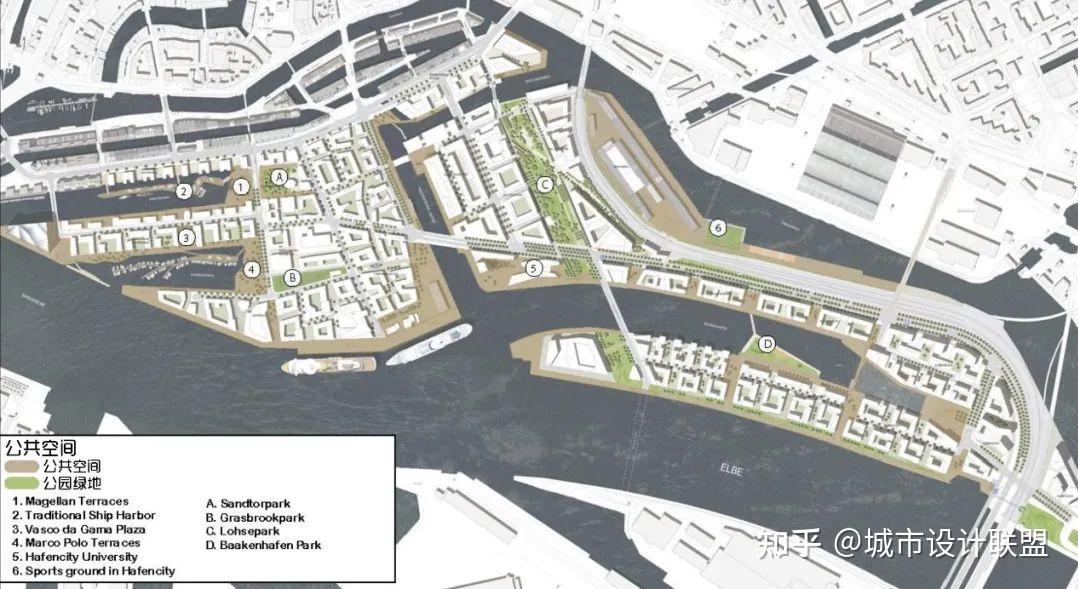 △ HafenCity城市功能结构布局(©mocy) HafenCity城市空间要素
